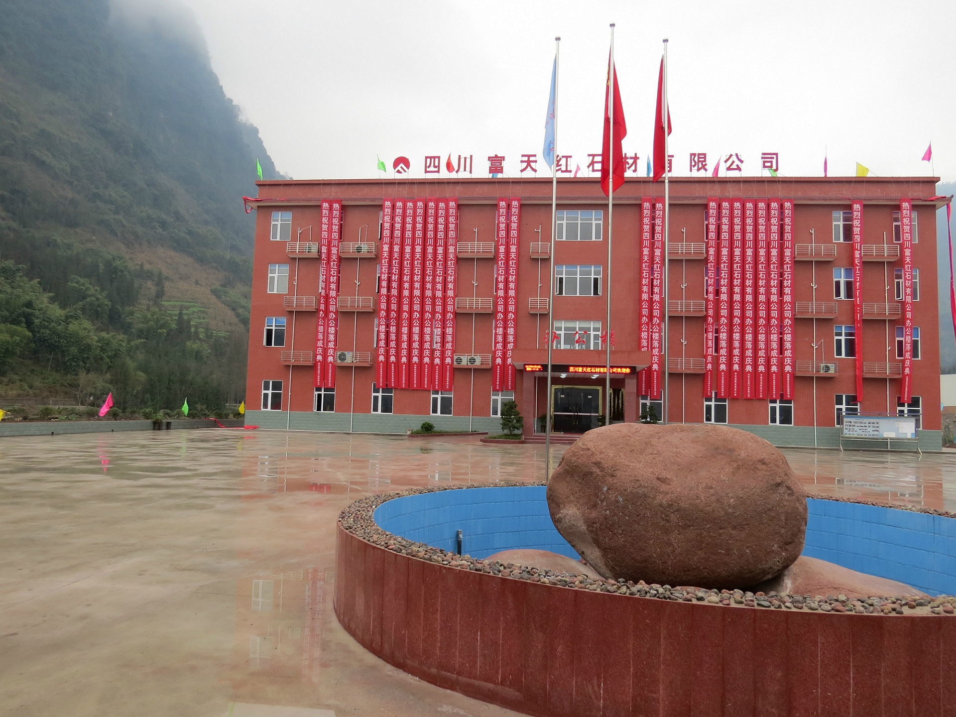 2015年9月,荥经富天矿业有限公司与荥经县红源石材有限公司重组成立四川富天红石材有限公司,公司注册资金3000万元,拥有0.48平方公里花岗石矿采矿权及矿山周围的2214.13亩林权,同时拥有占地103.5亩的石材加工基地。公司设备先进、工艺合理、技术成熟,年可生产花岗石等各类石材的各种型材200万平米。同时,利用花岗石尾矿年可生产120万立方米的砂石骨料。“规范管理、安全环保、质量服务”是我们的宗旨和持续发展战略,竭诚欢迎各界人士参观指导、商务洽谈、共同发展。